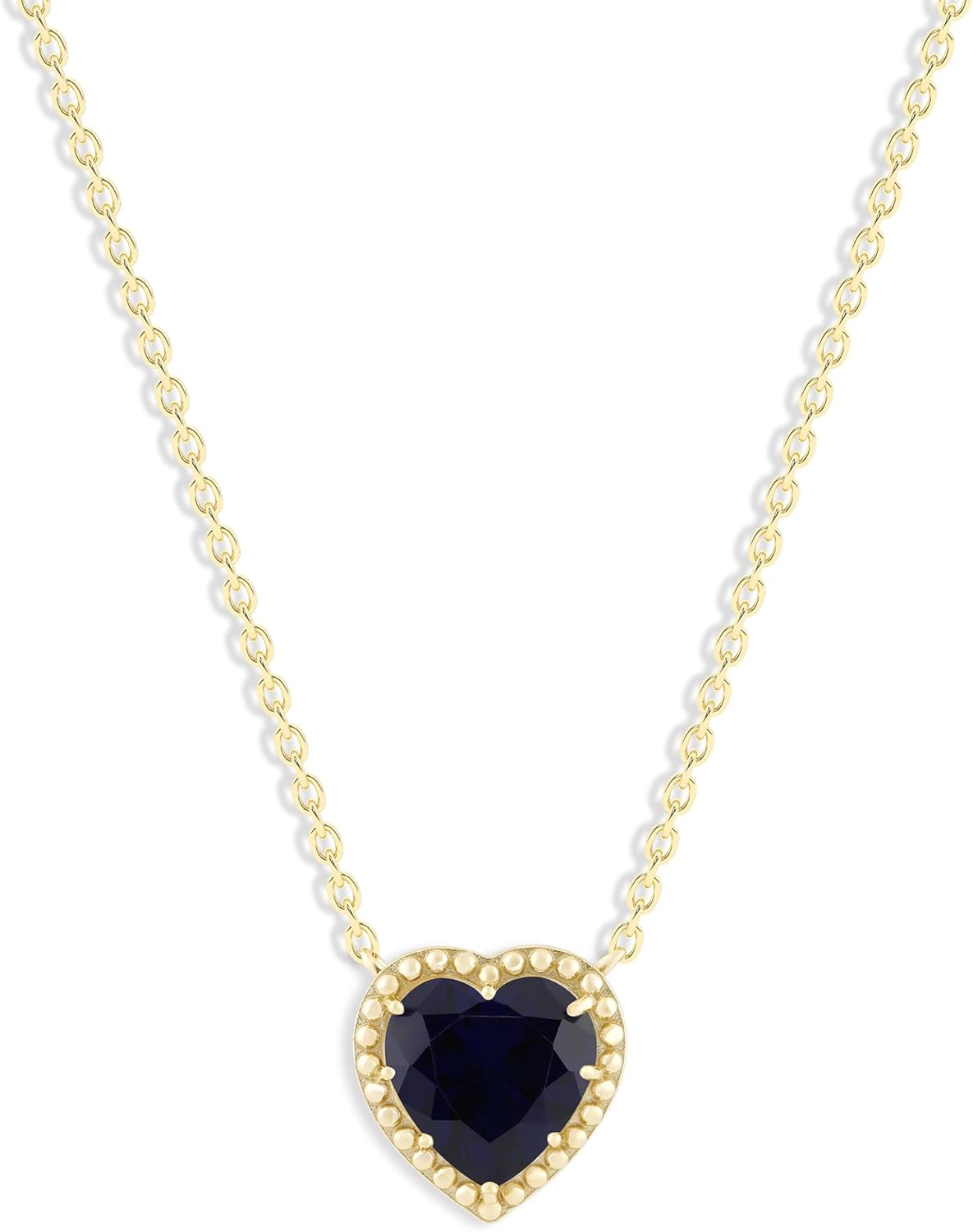 Belacqua Gemstone Necklace in 14K Gold Plated Sterling Silver, Heart Shape Pendant, 15" Cable Chain with 2" Extender, Spring Ring Clasp, Dainty Birthstone Necklace for Women, Gift Box Included