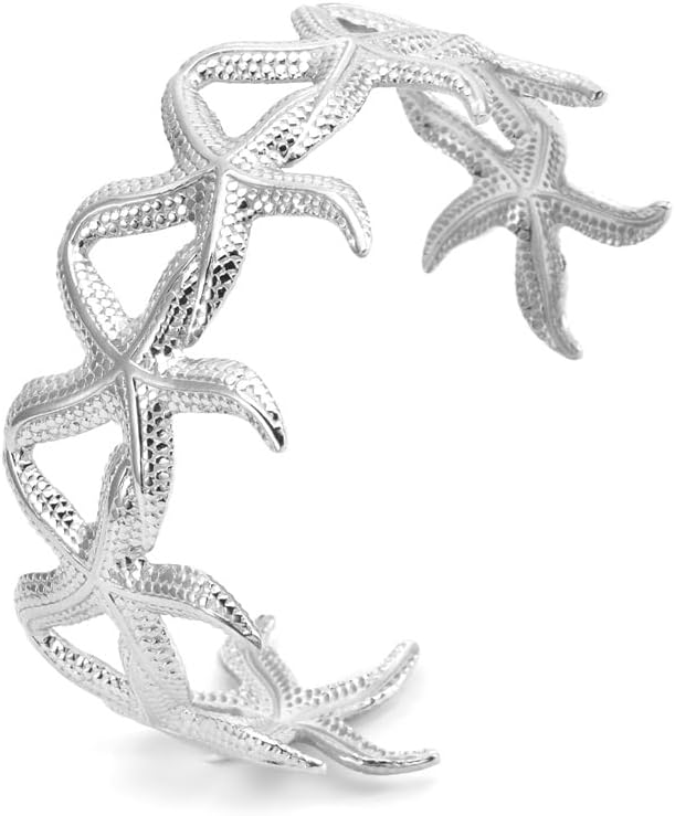 YWMAN Chunky Silver Cuff Bracelet, Starfish Beach Bangle Bracelets for Women Men