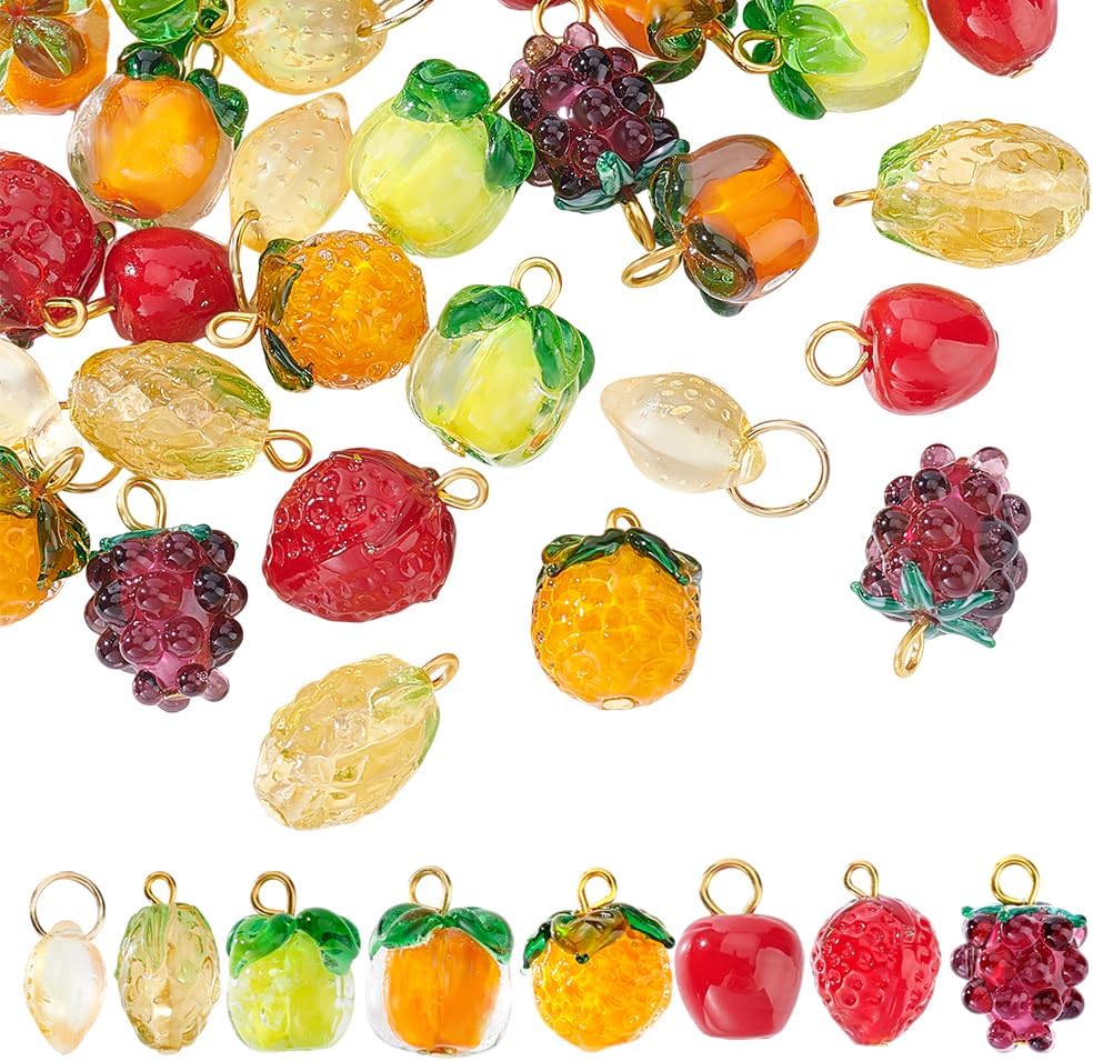 AHANDMAKER 32Pcs Fruit Glass Charmsuit - 8 Styles Lampwork Fruit Charms - Crystal Food Charms - Pineapple, Strawberry, Grapes - DIY Craft Necklace Jewellery Making