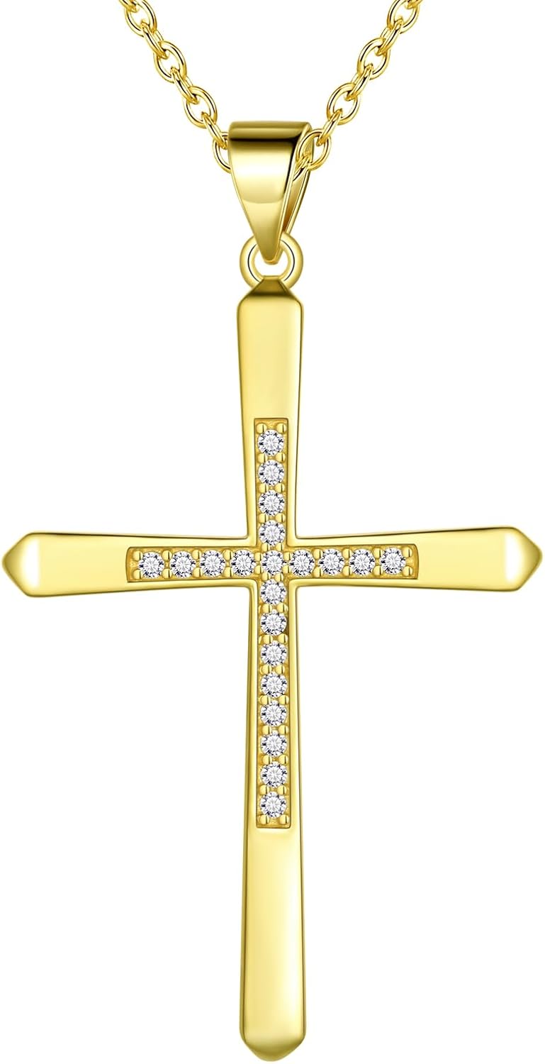 Jewmon 925 Sterling Silver Cubic Zirconia Cross Necklace for Women Mens Cross Faith Pendant Necklace Gothic Protection Christian Jewelry for Easter Christmas Birthday Couples Gifts