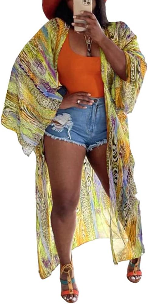 Yeshire Women's Sheer Chiffon Blouse Tops Kimono Cardigan Floral Loose Cover Ups Beach Cover up Swimsuit