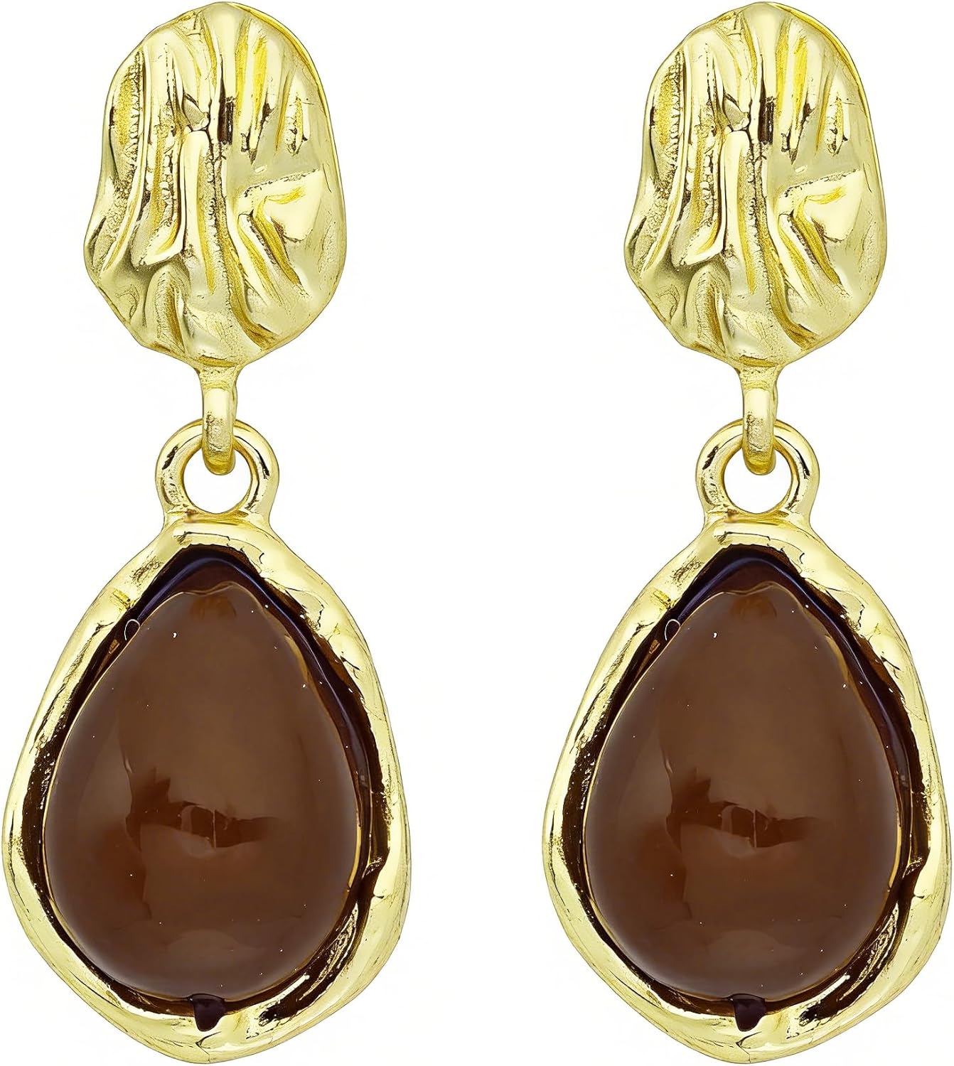 Irregular Amber Earrings for Women Geometric Brown Earrings Gold Statement Earring Asymmetric Crystal Earrings Trendy Vintage Jewelry