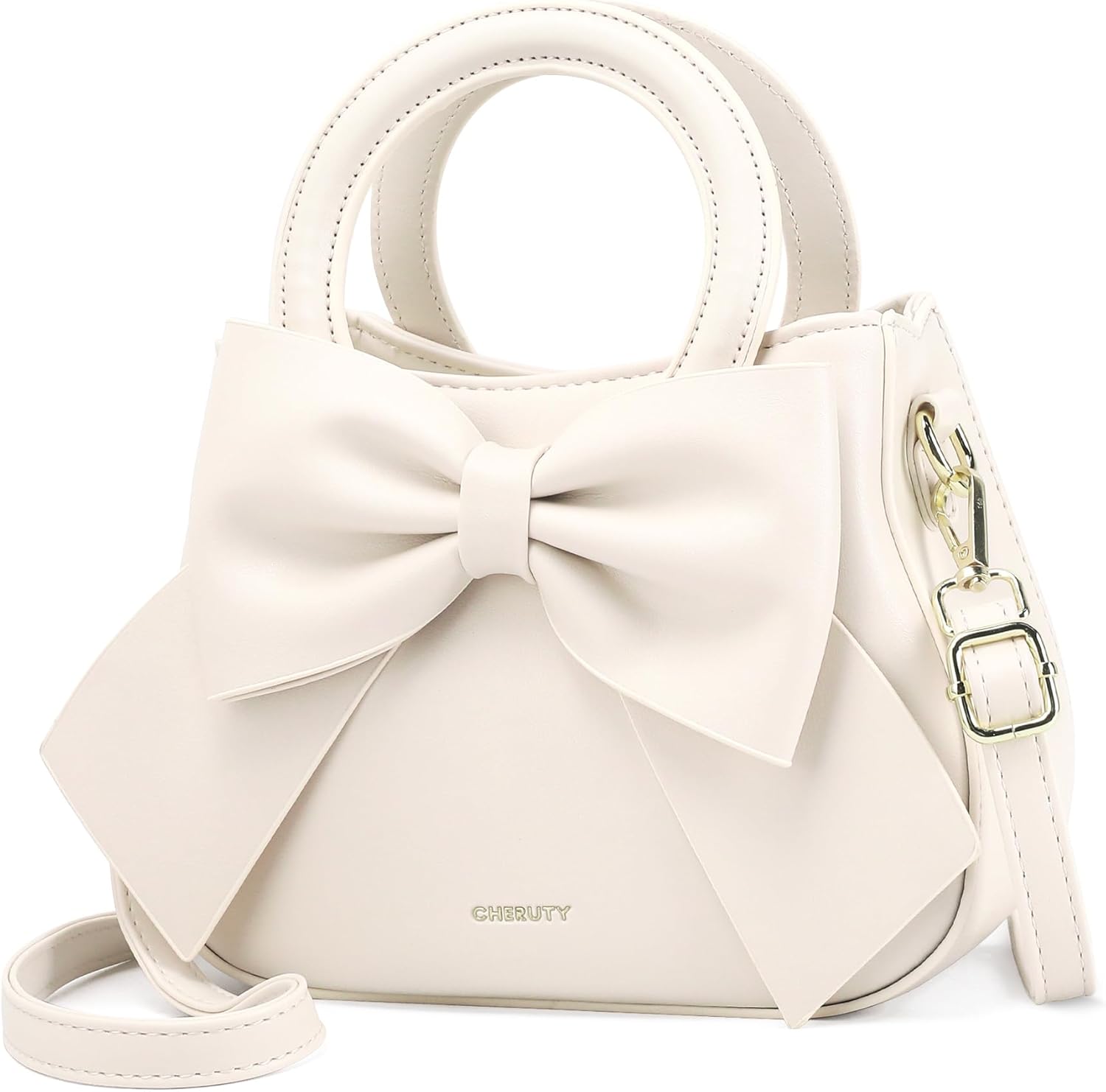 Small Purses for Women Crossbody Bag, Vegan Leather Crossbody Purses and Handbags with Top Carry Handle and Cute Bow Knot