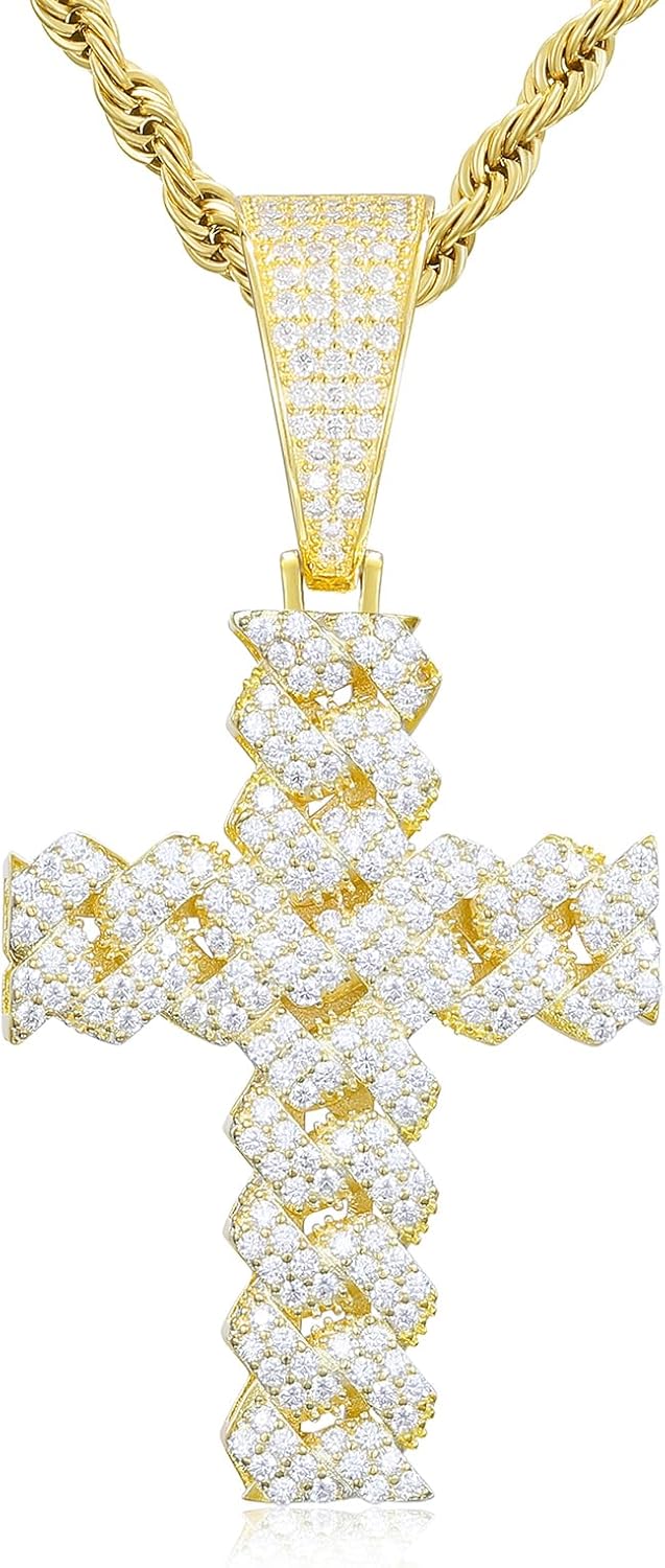 Moissanite Cross Necklace 2.7 Carat Iced Out Moissanite Cross Pendant 925 Sterling Silver Cross Chain Necklace D Color VVS1 18k Gold Plated Christian Pendant