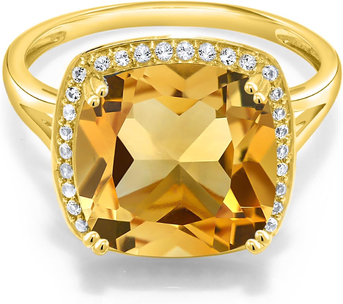Gem Stone King 5-8 Cttw 10K Yellow Gold Gemstone Birthstone and White Created Sapphire Ring For Women | Cushion 12MM | Wedding Anniversary Promise Ring For Women | Available In Size 5, 6, 7, 8, 9