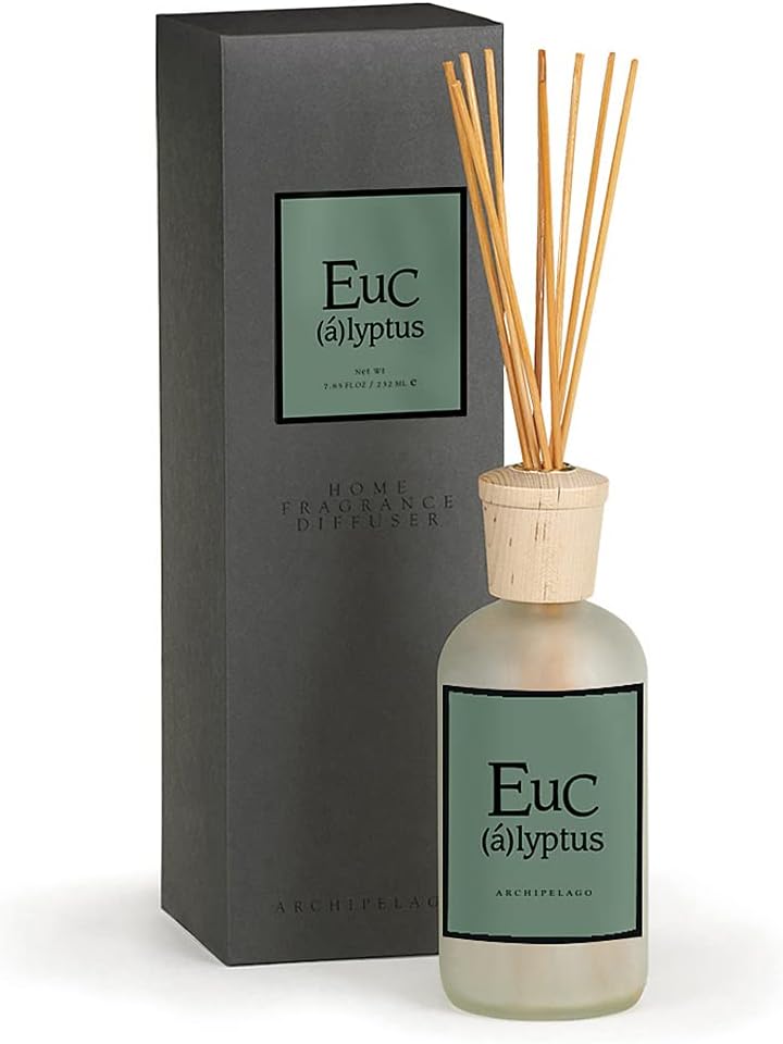 - Archipelago Botanicals Eucalyptus Reed Diffuser. The reed diffuser features a distinctive blend of Wild Eucalyptus, Palm Leaf, and Musk. This premium home fragrance diffuser includes fragrance oil, a decorative wooden cap, and 10 natural diffuser reeds for a luxurious at home spa experience. Enjoy the true eucalyptus aroma that Archipelago is known for