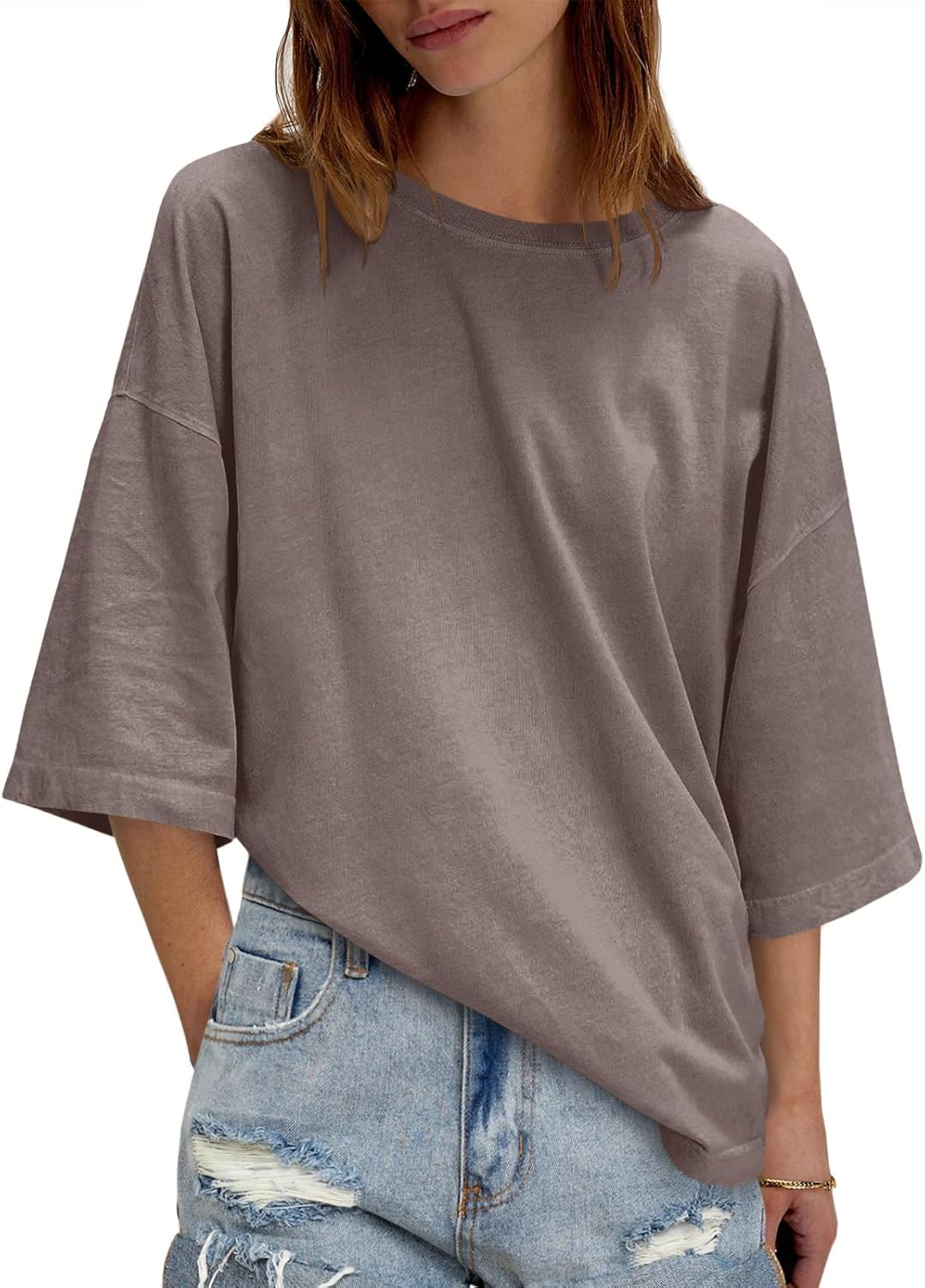 UNCLECAT Womens Oversized Half Sleeve T Shirts Summer Tops Trendy Crew Neck Loose Fit Workout Tee Clothes