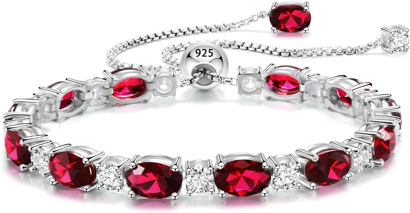 Adjustable Birthstone Gem Tennis Bracelet for Women, 925 Sterling Silver Plated with White Gold Chain