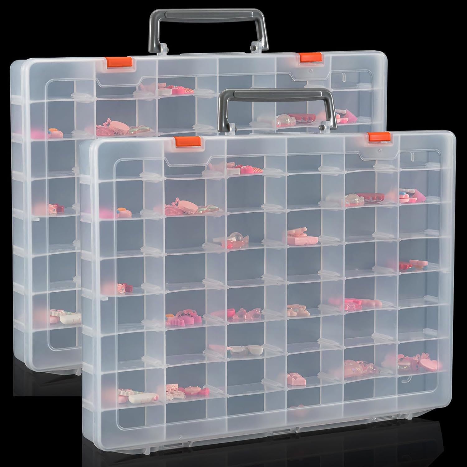 - 【Large Capacity & Removable Dividers】-- Store every tiny stuff from jewelry to crafts to tackle tools while keeping them safe from pests and dust with Large Clear Storage Boxes. You will receive 2 pieces Large 48 Grids Clear Plastic Organizer Boxes with Adjustable Dividers. The 48 grids inside each box are alternable to meet various needs of collectors by adjusting dividers. The outer box measures 36.2 x 26.2 x 4.2 cm/14.25 x 10.31 x 1.65 inch.