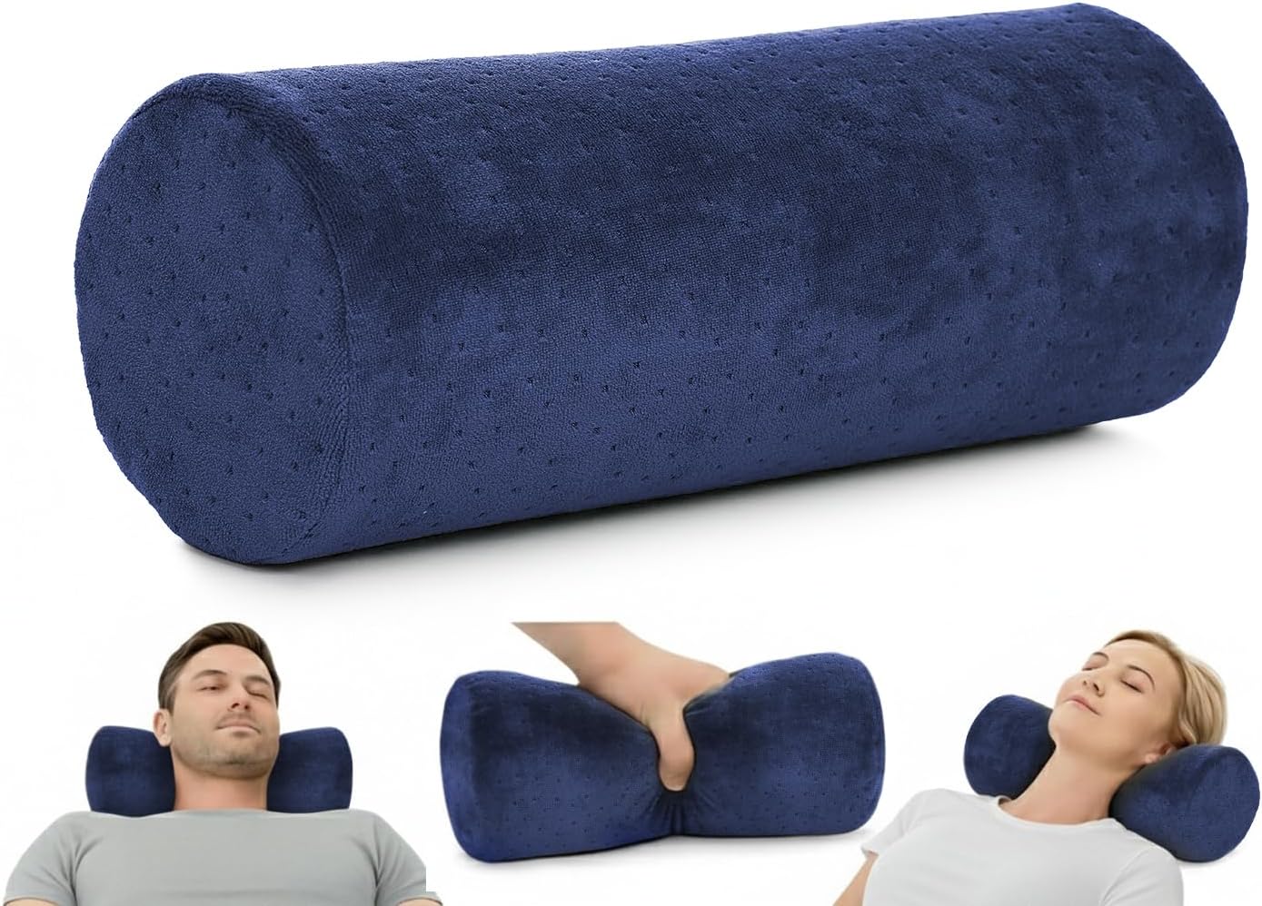 AllSett Health Round Cervical Roll Cylinder Bolster Pillow with Removable Washable Cover, Ergonomically Designed for Head, Neck, Back, and Legs || Ideal for Spine and Neck Support, Navy