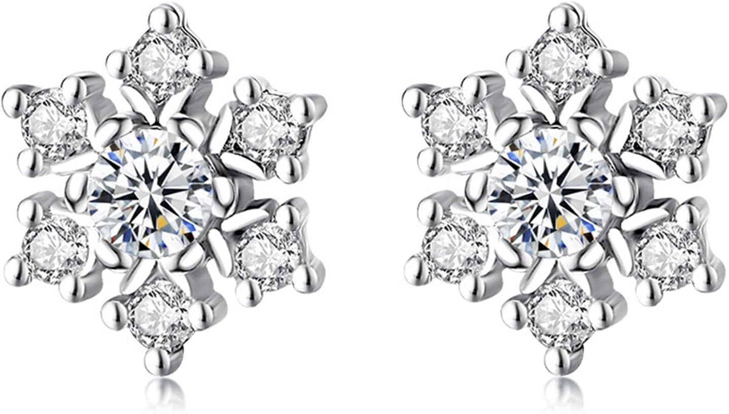 BG&WLing Snowflake Earrings for Women 925 Sterling Silver Earrings Stud with Cubic Zirconia Hypoallergenic Christmas Jewelry