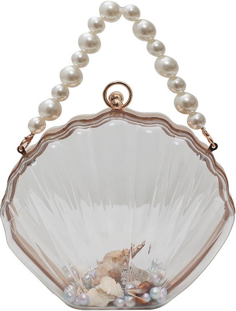 QZUnique Conch Shoulder Handbag Novelty Chain Strap Purse Acrylic Fashion Crossbody Evening Bag Clutch for Women Girl