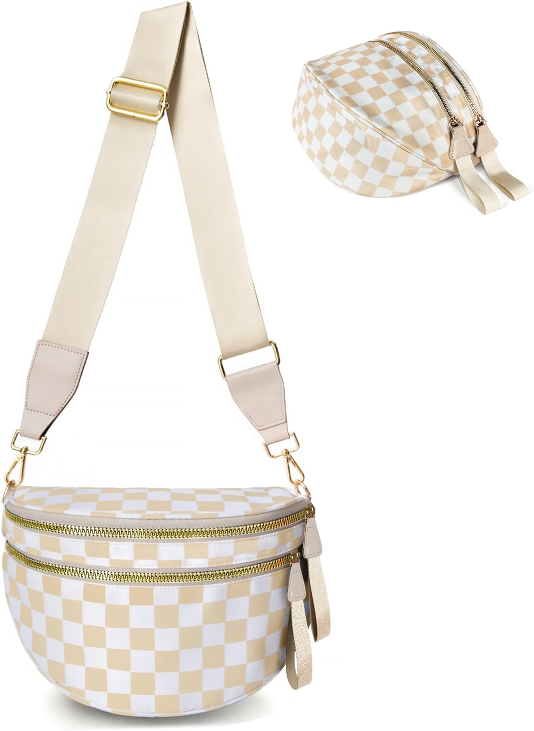 Checkered Crossbody Bag Bum Bags for Women, Spacious Nylon Fanny Packs Belt Wallet (beige checkered)
