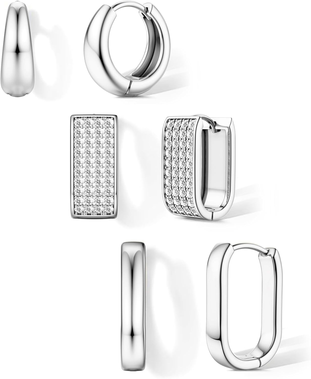 Florideco 3Pairs Chunky Hoop Earrings Set 14K Gold Plated Hoops Earrings for Women Trendy Small Thick Huggie Hoops Earring Lightweight Silver Plated Hoop Earring Sets for Multiple Piercing