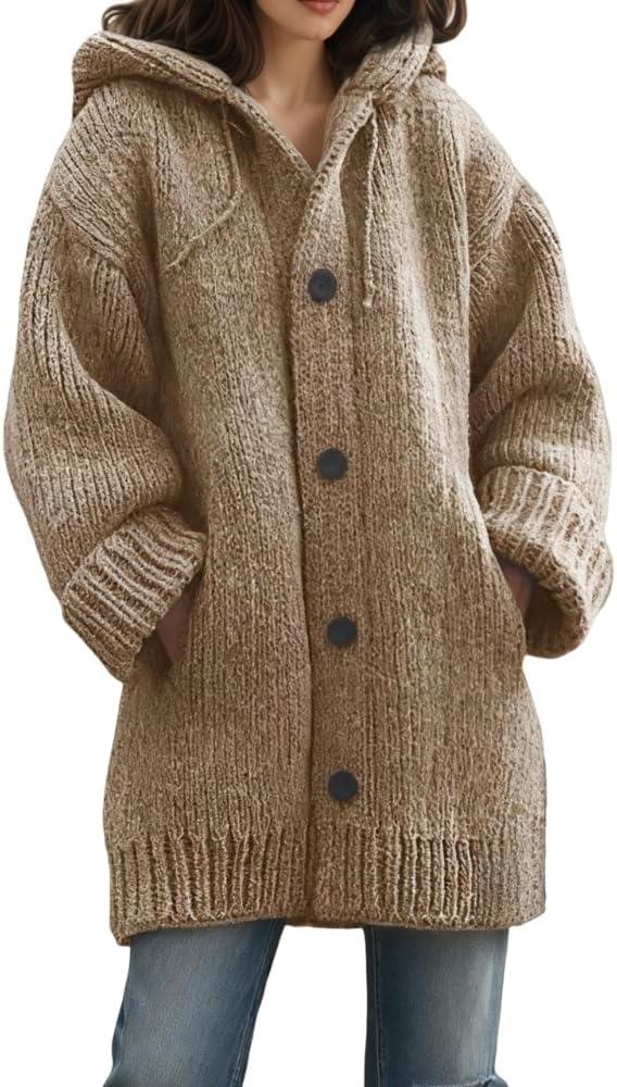 Alaster Queen Women's Hooded Fall Cardigan Long Sweater Open Front Button Down Knit Winter Cardigan Coats with Pockets
