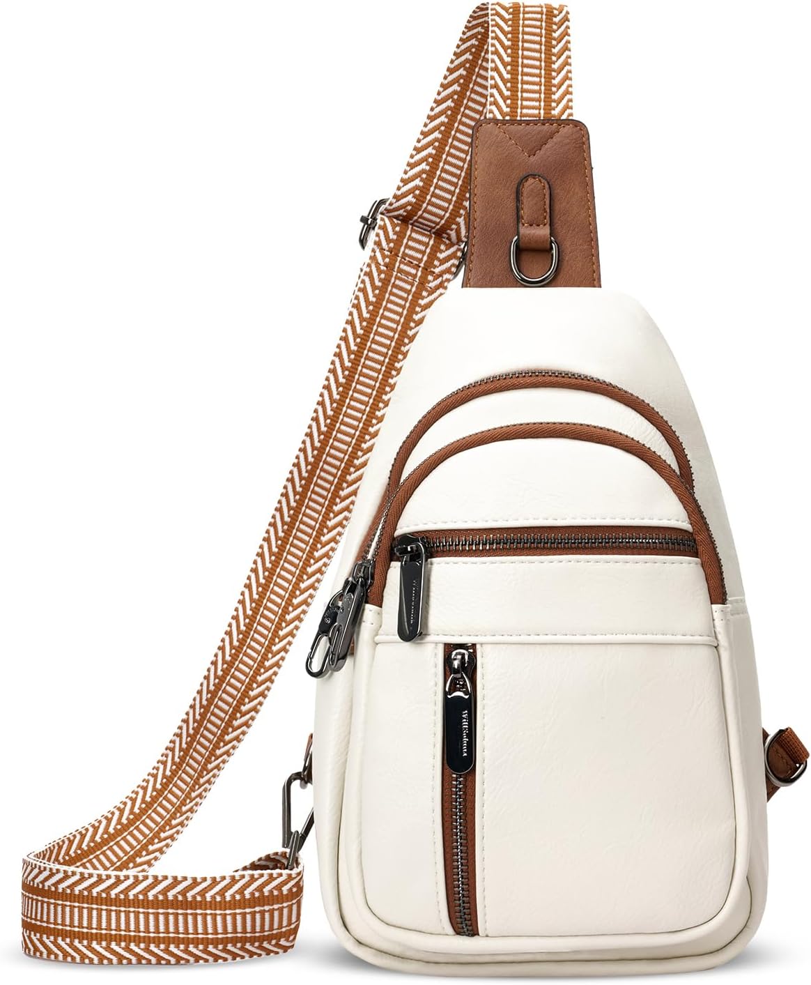 Anti-theft Sling Bag for Women, Crossbody Chest Bags, PU Leather Small Fanny Pack with Adjustable Strap, White