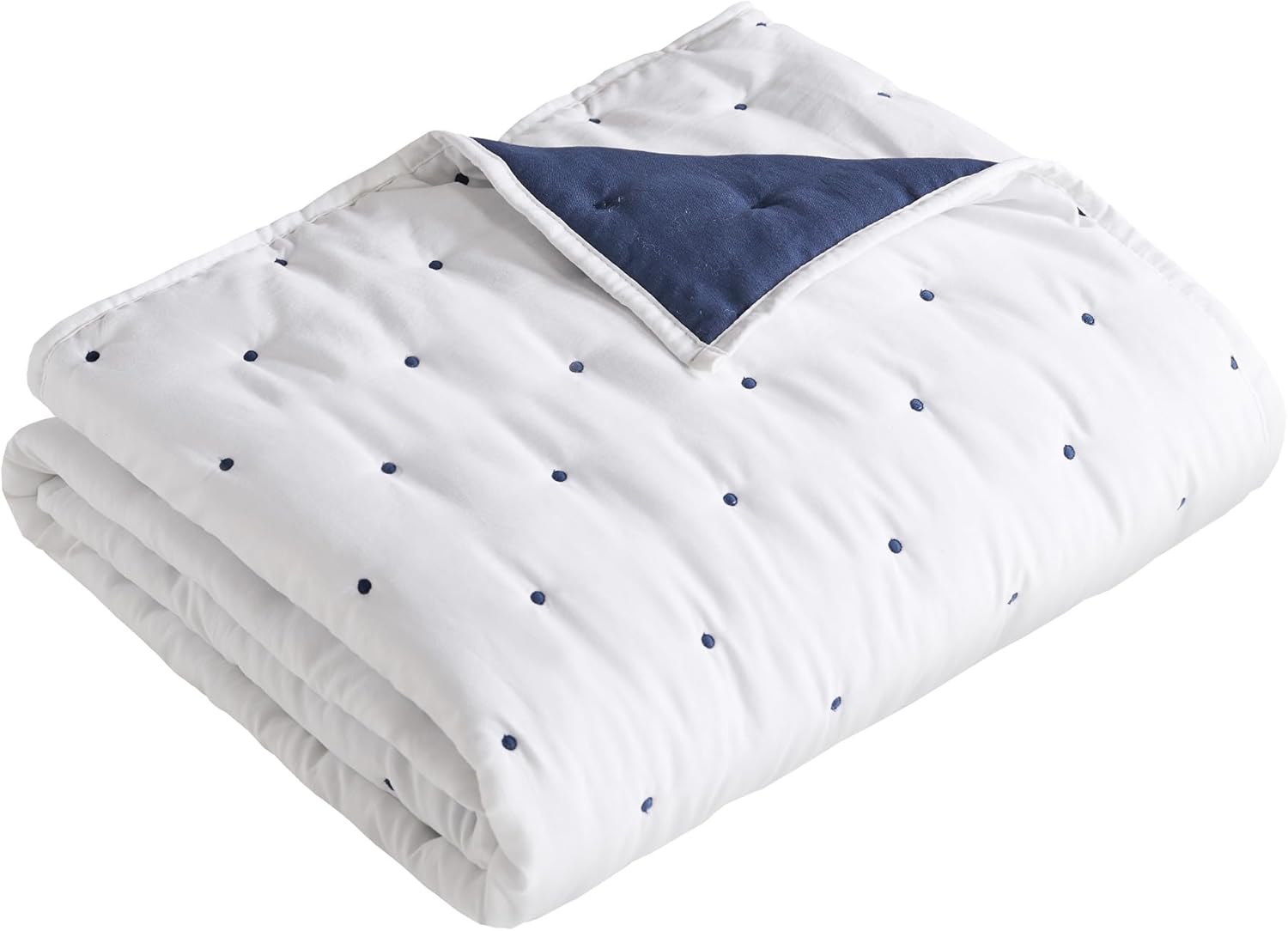 - COORDINATE YOUR ROOM DECOR: Create a wonderful space with this quilted throw. The white and navy design brings modern, sophisticated accents into your home and will match a variety of different looks. You can also freshen your room with other items from the Embroidered Swiss Dot collection.