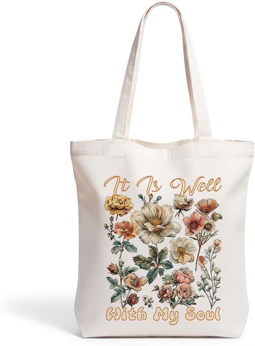 Inspirational Christian Gifts Canvas Tote Bag for Women Girls Christmas Friendship Birthday Grocery Bags