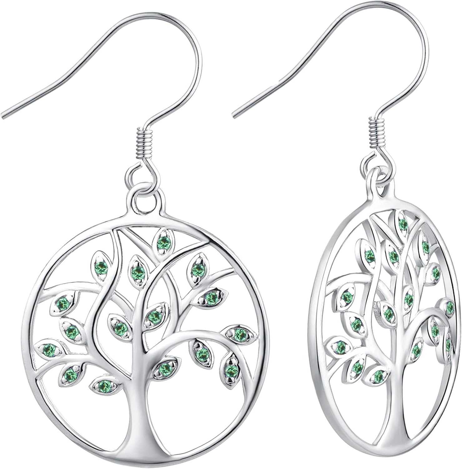 YL Tree Earrings Sterling Silver Tree of Life Hook Earrings Round Birthstone Dangle Drop Jewelry for Women