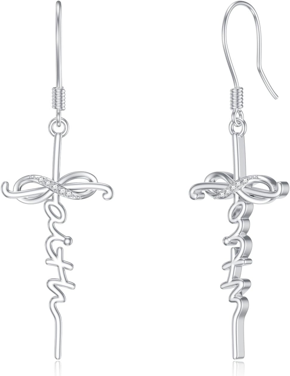 Diamond Faith Cross Earrings for Women 925 Sterling Silver Infinity Faith Cross Drop Dangle Earrings with Lab Grown Diamond Jewelry Gifts