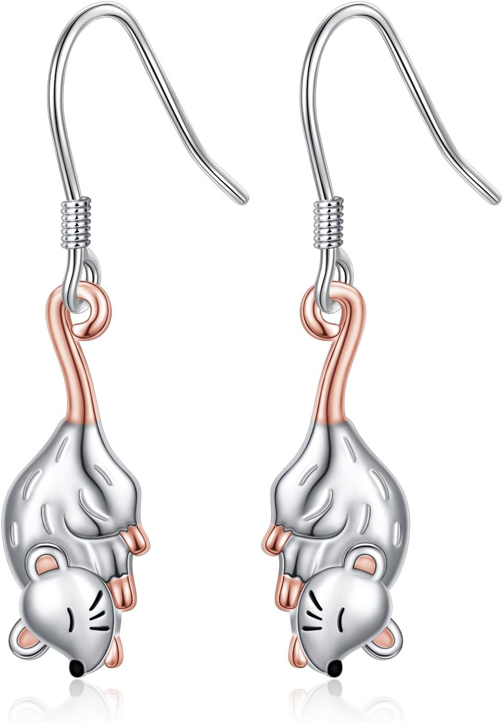 Opossum Dangle Earrings for Women 925 Sterling Silver Animal Dangling Earrings for Christmas Birthday Jewelry Gifts
