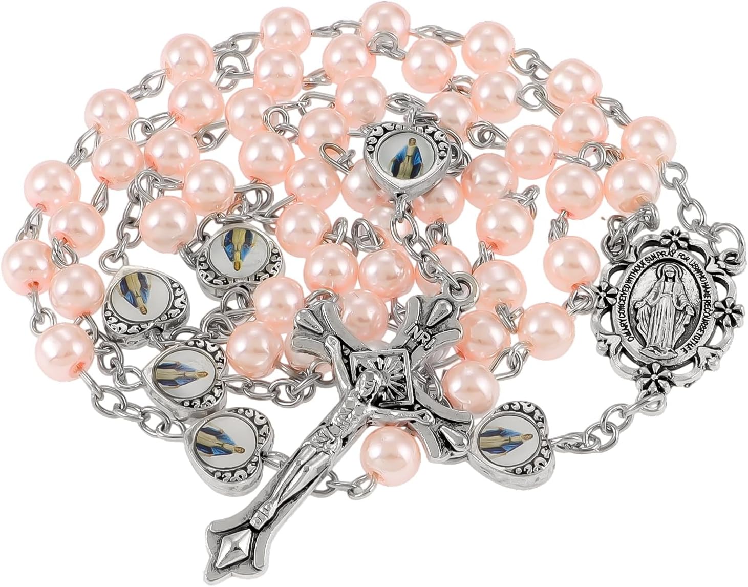 Rosary Beads Catholic, Rosary Necklace with Leather Pouch with Magnetic Top Bag for Men and Women Christian Gifts