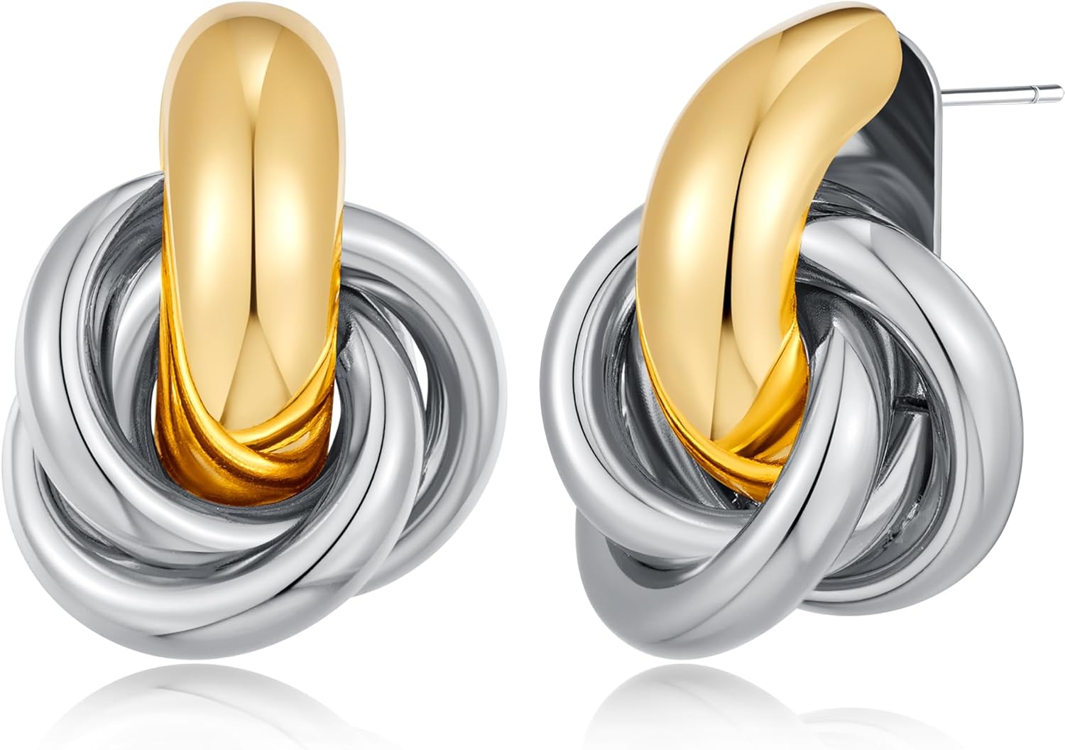 Gold Geometric Drop Dangle Earrings for Women Chunky Trendy Knot Stud Small Twisted Link Earring Jewelry Gift