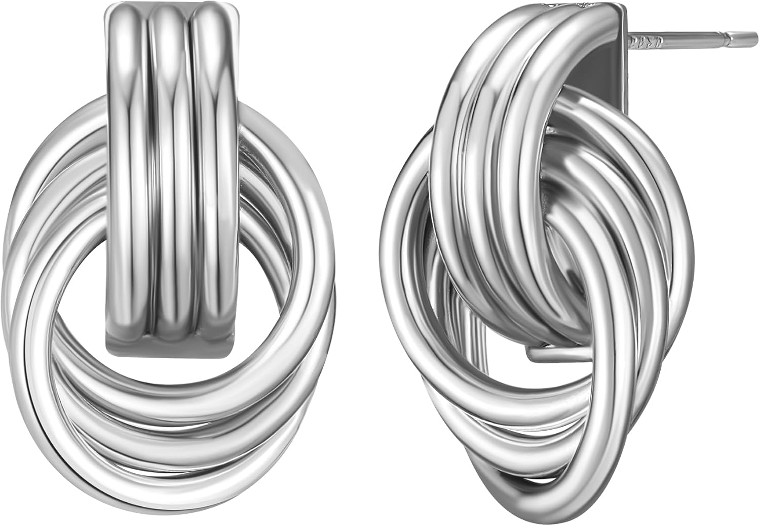 SWEETV Statement Geometric Dangle Drop Earrings for Women, Trendy Chunky Twisted Knot Link Earring Dupes, Fashion Women's Stud Earrings Jewelry Gift