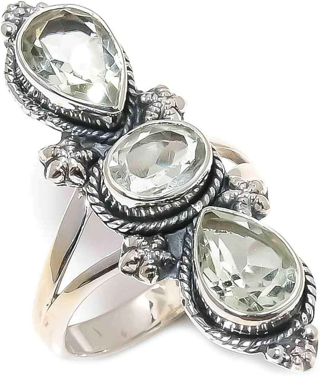 925 Silver Rhodium Alloy Adjustable Ring - 3 Gemstones Unique Handmade Ring for Women, Statement Jewelry Gift for Her