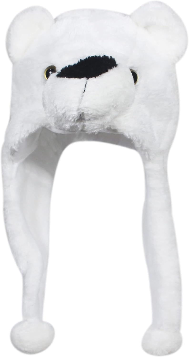 Timiot Cute Plush Animal Character Winter Hat Fun Ski Cap with Detailed Animal Face Long Ear Straps with Pom Pom Ends