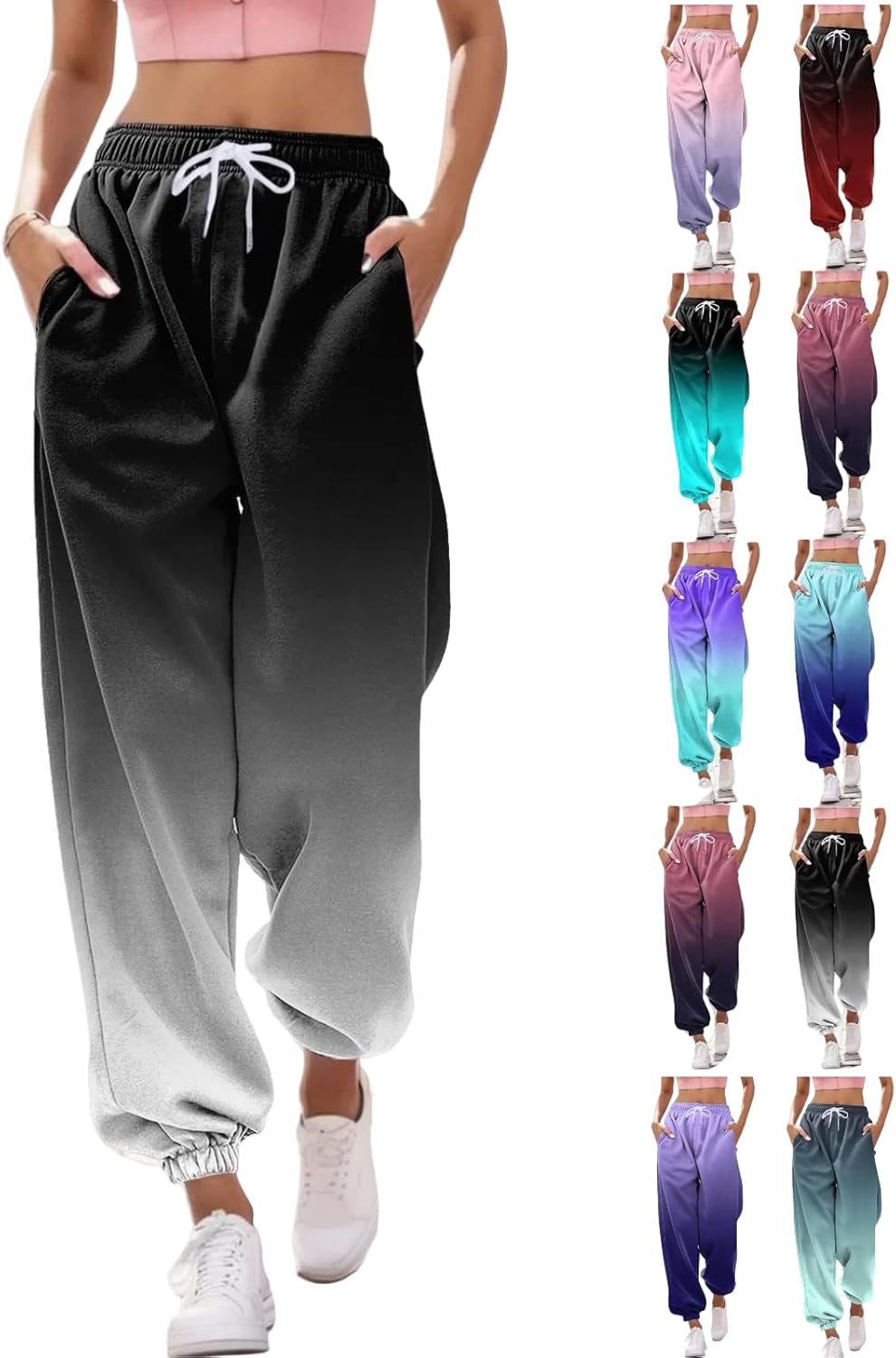 Womens Sweatpants 2025 High Waisted Baggy Gradient Cinch Bottom Athletic Workout Joggers Lounge Pants with Pockets