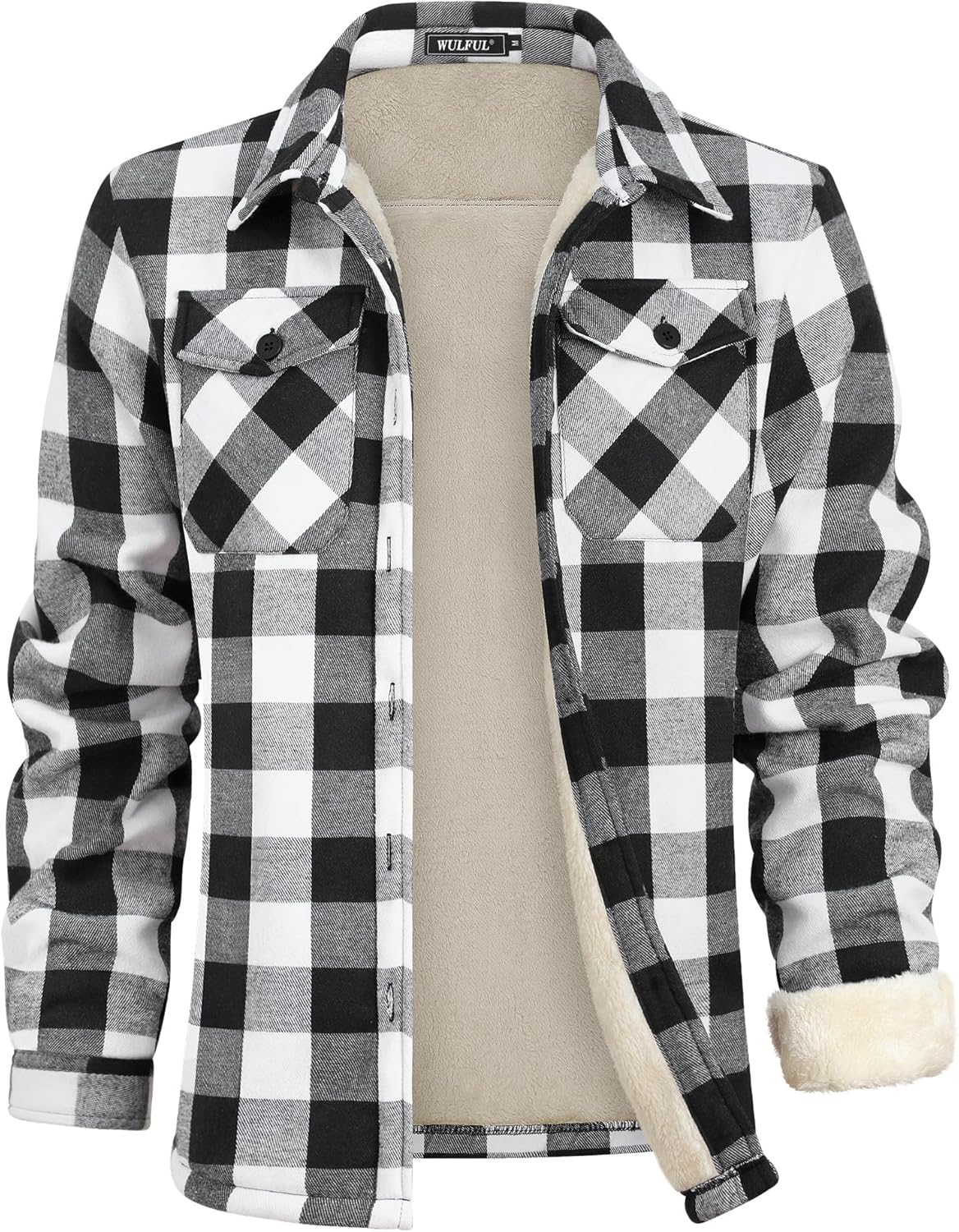 WULFUL Men's Flannel Fleece Jackets Sherpa Lined Shirt Jacket Plaid Jackets Shacket Winter Outerwear Warm