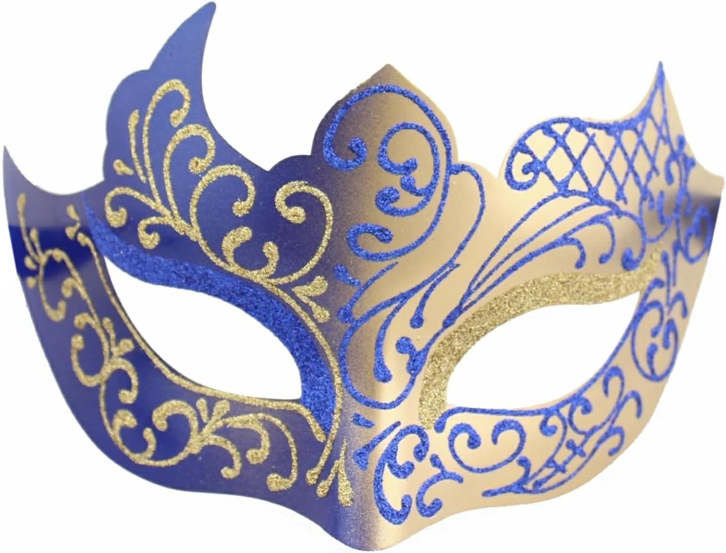 - Good Quality-Made of high quality eco-friendly hard plastic mens masquerade mask, excellent craftsmanship, nice paint finish, no flaking of paint, doesn't pinch your face or tear your hair, easy to wear, durbale and sturdy. Color: Blue gold.