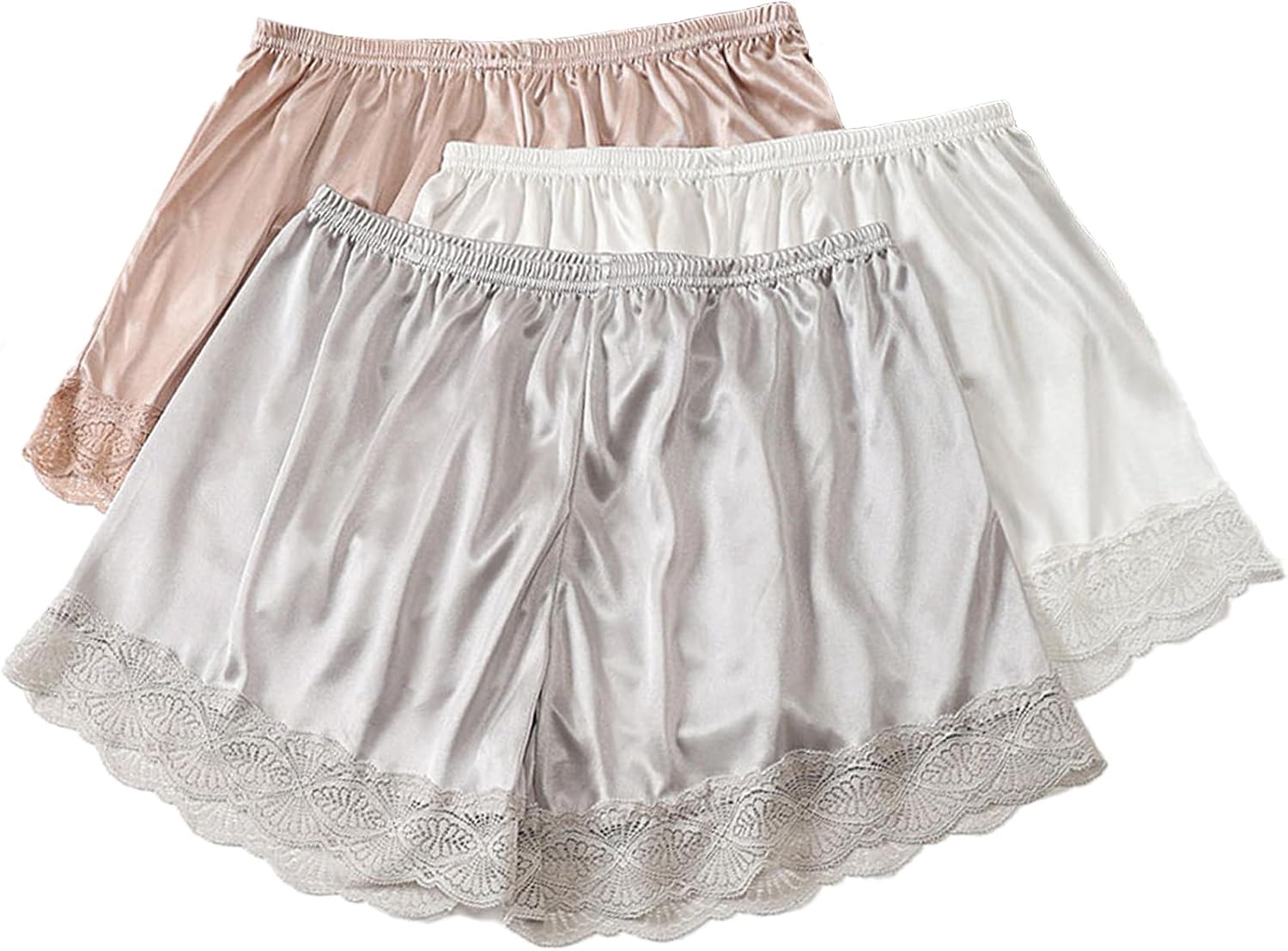 3 Pack Women's Half Slip Shorts for Under Dresses Bow Lace Satin Shorts Pettipants Half Slip Culotte Shorts Split Skirt