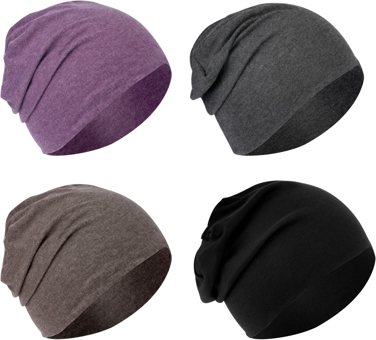 BEVTEE Cotton Slouchy Beanie for Men 4 Packs, Skull Caps Lightweight for Winter, Chemo Hats for Women, Gift, Fashion