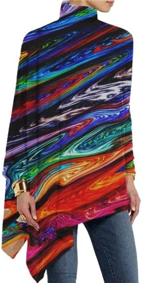 Womens Boho Floral Turtleneck Asymmetrical Hem Long Sleeve Shirts Casual Plus Size Loose Top Pullover Modest Blouse for Women