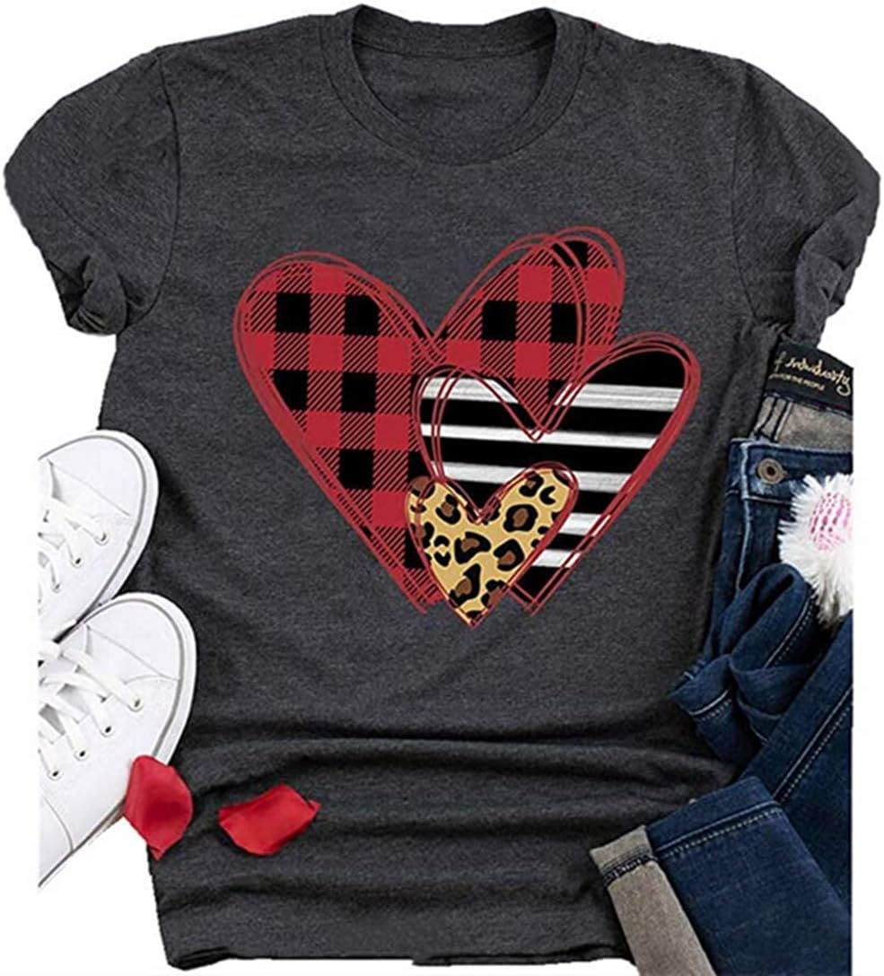 Valentines Shirts for Women Retro Candy Heart Printed Short Sleeve Casual Graphic Tee Tops