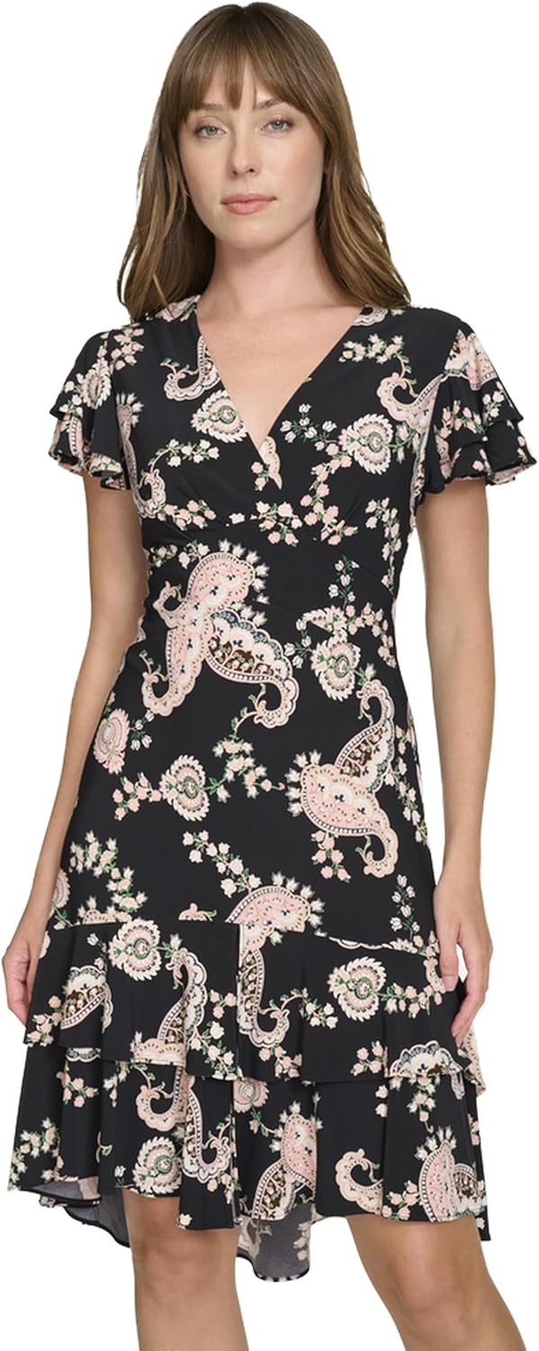 Tommy Hilfiger Womens Flutter Sleeve V-Neck Ruffle Trim Chiffon Mini Dress