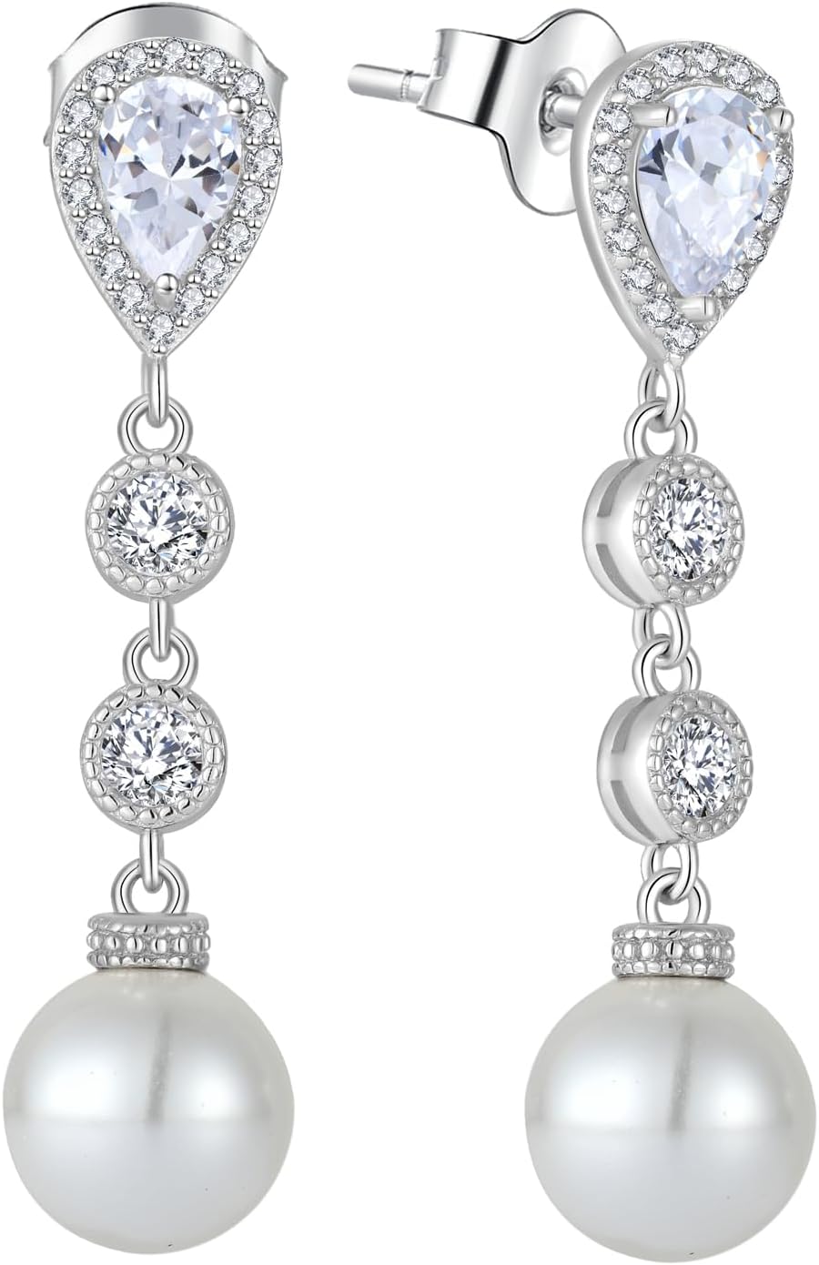 Women 925 Sterling Silver Pearl Teardrop Leverback/Stud Dangle Drop Earrings with 5A Cubic Zirconia for Her Mom Mother Wife Grandma Jewelry