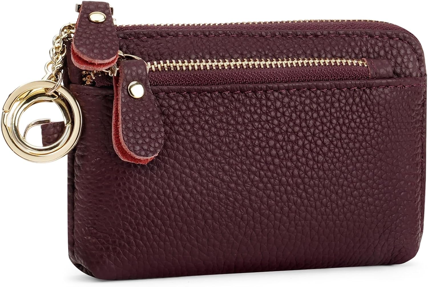 SENDEFN Women's Small Wristlet Coin Pouch Genuine Leather 3 Zippers Purse with Keychain