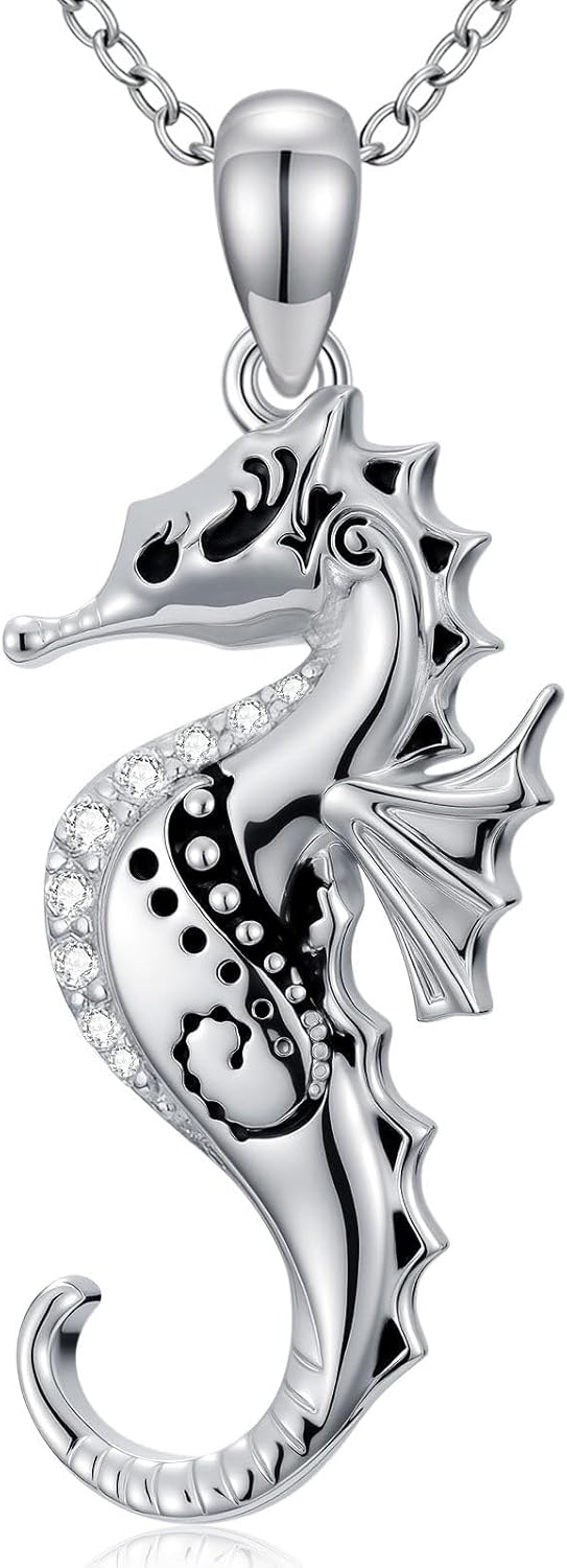 Diamond Seahorse Necklace for Women 925 Sterling Sliver Seahorse Pendant Necklace with Lab Grown Diamonds Summer Ocean Jewelry Fine Gift for Her