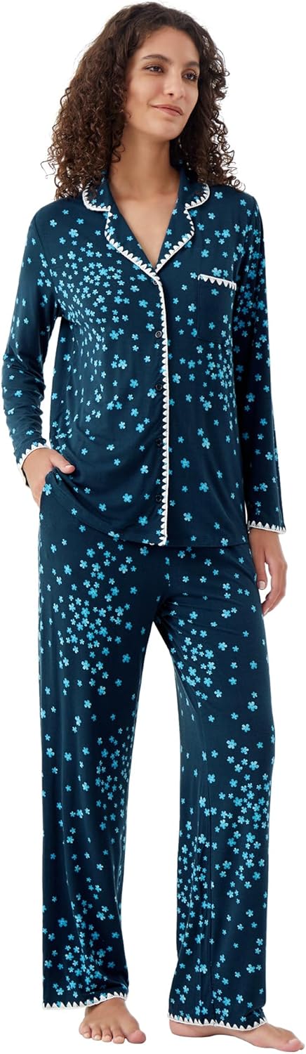 WiWi Women's Pajama Set Button Down Sleepwear Soft Bamboo Viscose Loungewear with Pockets 2 Piece PJ Sleepwear S-XXL