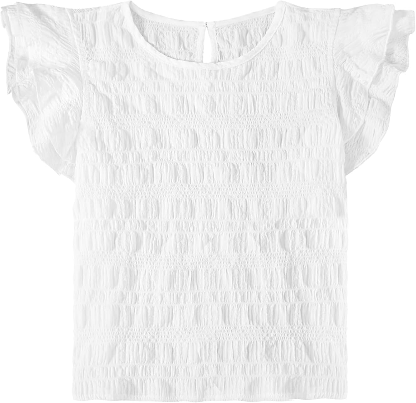 Girls Ruffle Shirt Cute Summer Smocked Cap Sleeve Tops Basic Casual Tees