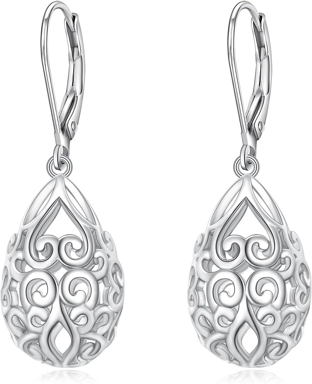 Alphm Filigree Dangle Drop Earrings 925 Sterling Silver French Style Leverback Teardrop Earrings for Women Lightweight Hypoallergenic Jewelry Valentine's Day Gifts for Wife Girlfriend