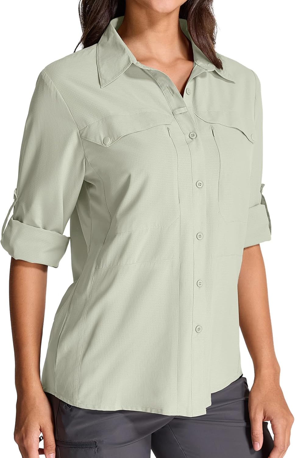 Women's UPF 50+ UV Sun Protection Safari Shirts Outdoor Long Sleeve Quick Dry Cool Lightweight Fishing Hiking Travel Shirts
