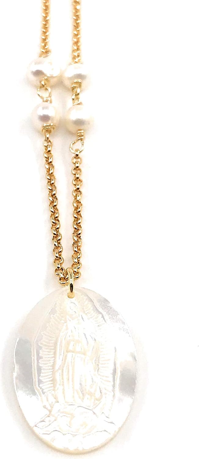 SIFRIMANIA Catholic Religious Necklace with Freshwater Pearls and Mother of Pearl Virgin Mary Pendant
