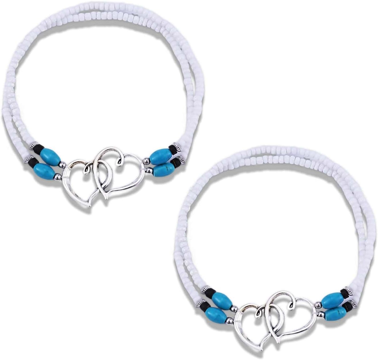 2PC Ankle Bracelets for Women Beaded Heart Ankle Bracelet Waterproof Bohemian Big Plus Size Anklets Summer Beach Accessories Boho Jewelry