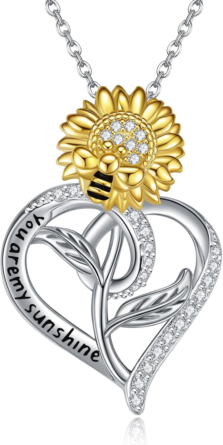Sunflower Necklace 925 Sterling Silver You Are My Sunshine Necklace Pendant Anniversary Birthday Gifts Heart Design Jewelry Gifts for Women Mom