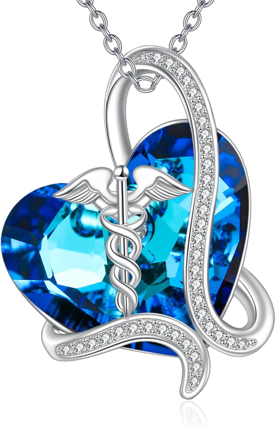 AOBOCO Caduceus Necklace 925 Sterling Silver Nursing Medical Symbol Pendant Necklace with Crystal from Austria Graduation Jewelry Gifts for Women Nurses Doctor RN Student