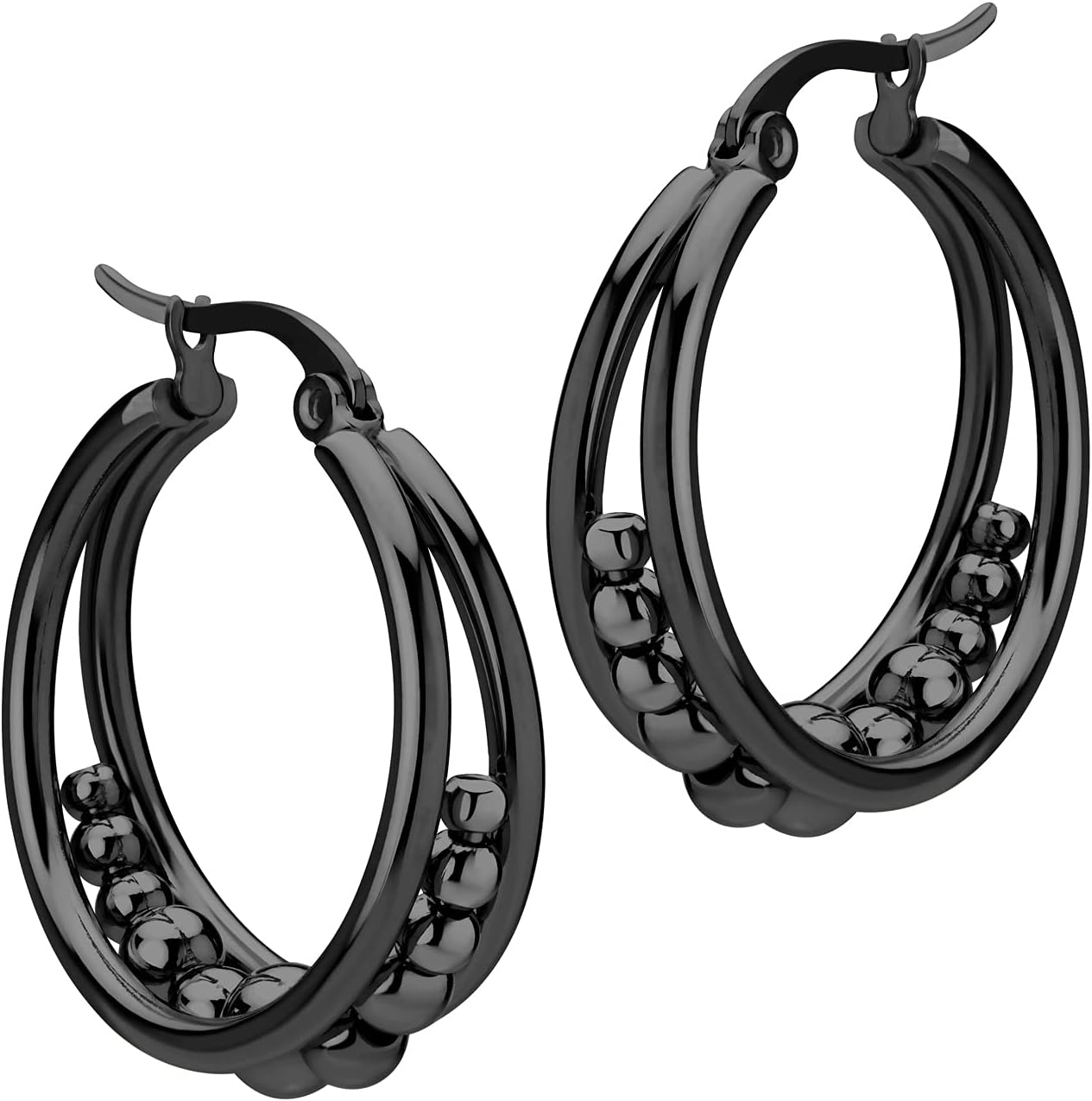 555Jewelry Hypoallergenic Medium Stainless Steel Wide Beaded Hoop Earrings for Women